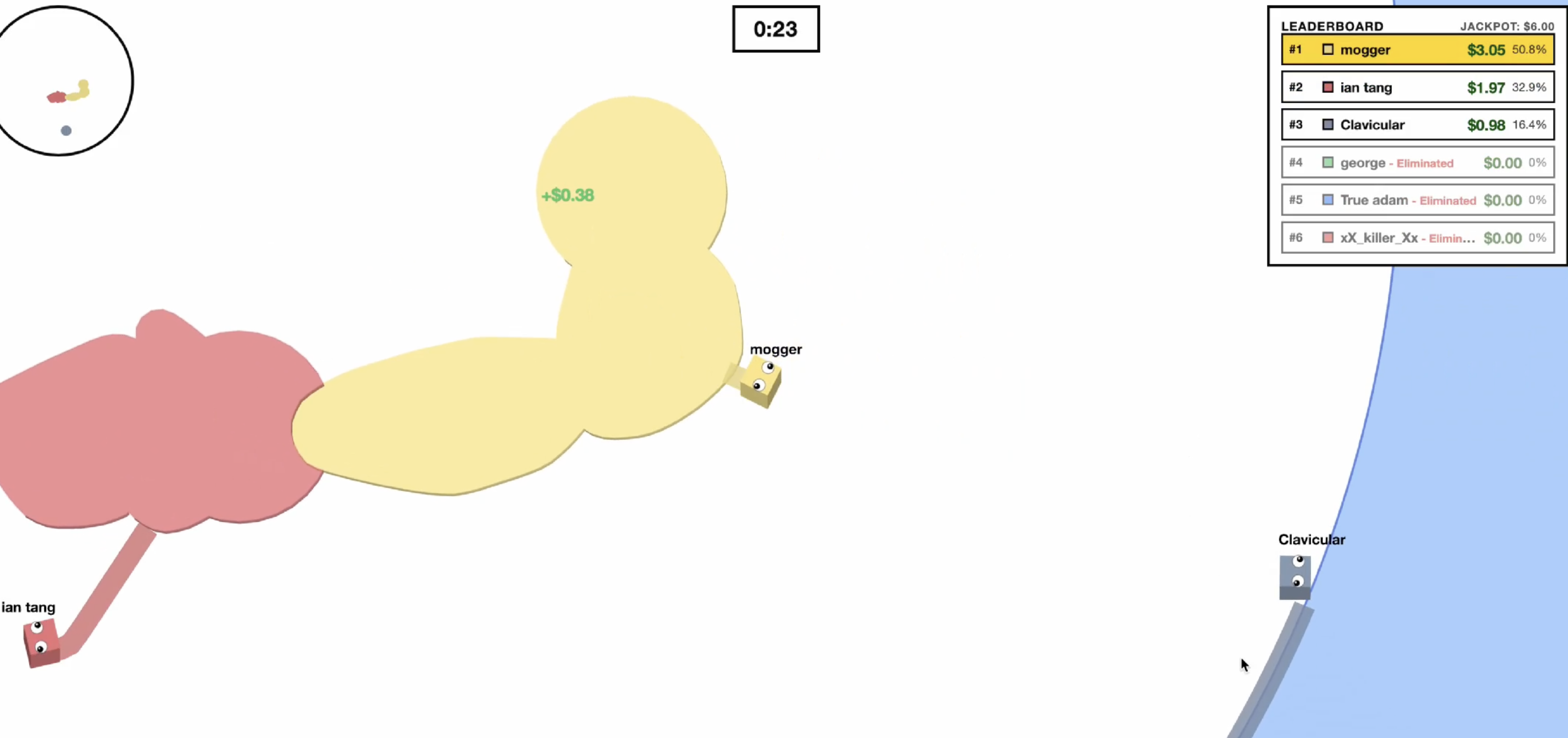 A few months ago, a friend and I built a Paper.io clone but players gamble real money and cash out based on performance.